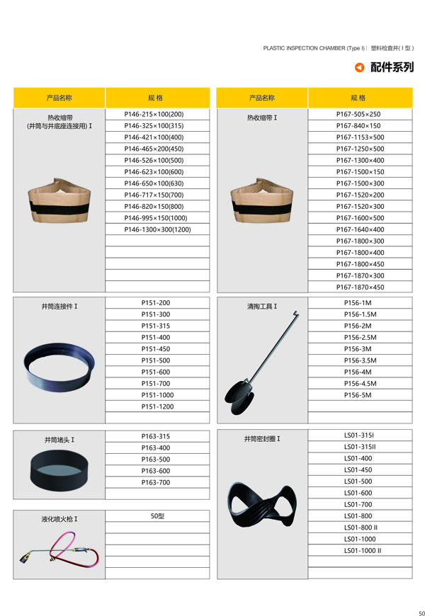 以上图片,塑料检查井相关配件;马鞍接头、热收缩套、井筒堵头、
